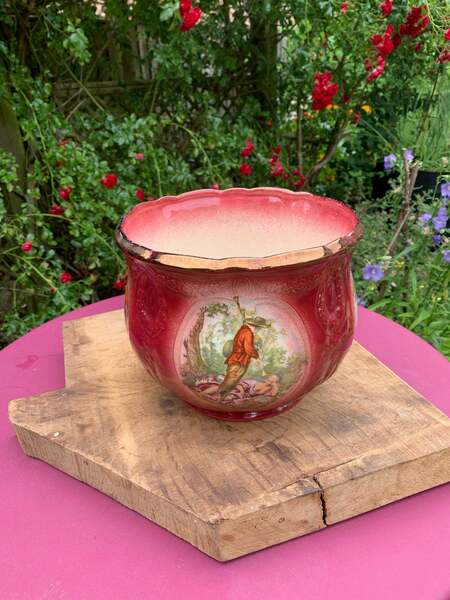 Vintage Large Handmade Ceramic Red Glazed Plant Pot Vinterior